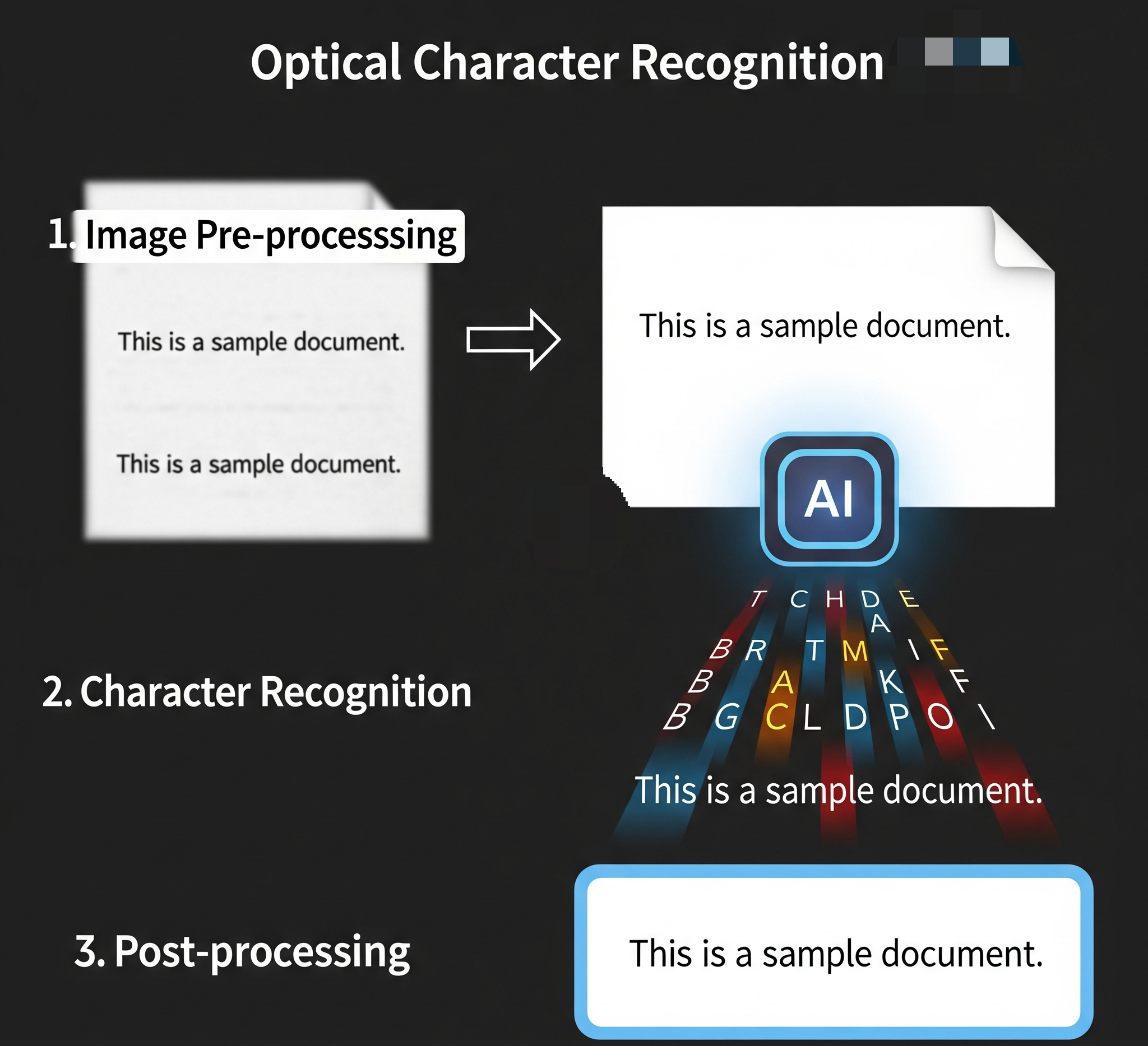 OCR의 작동원리는 다음과 같은 순서를 거칩니다.